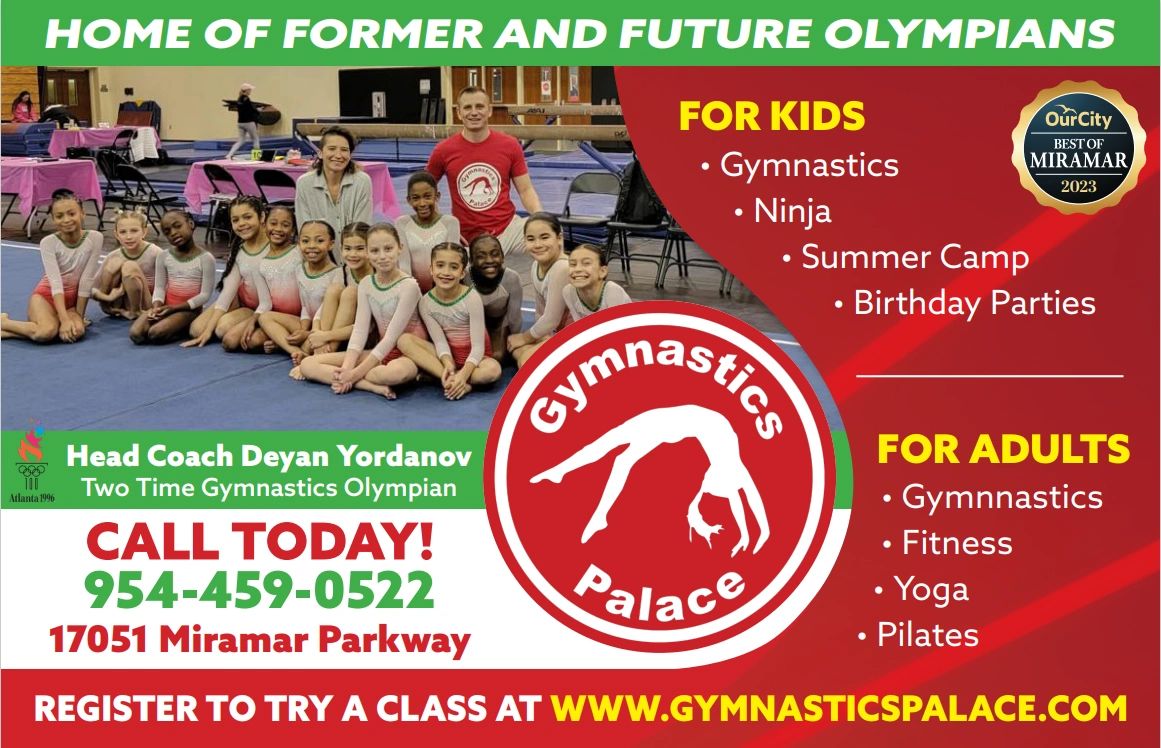 Gymnastics Palace is a Gymnastics Center, established in 2016, located in West Miramar, Florida, Owned and Operated by a 2 Time Gymnastics Olympian – Deyan Yordanov.